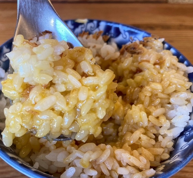 生蛋黃跟油蔥酥更是很好的調味劑,前者的清爽稍稍解了豬油的膩味,後者更是將整碗飯的香氣提升一個檔次。