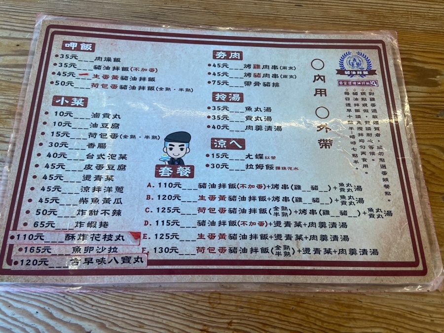 看店名就知道,此店的招牌為豬油拌飯,但行家都明白,要好吃一定要加上「蛋黃」。